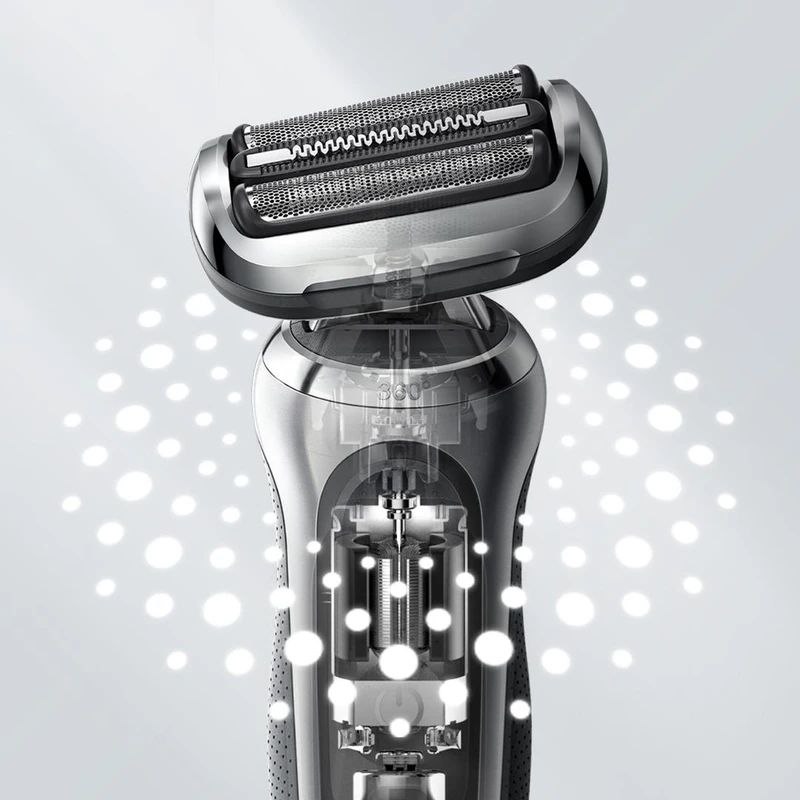 کشور مبدا برند: آلمان نحوه اصلاح : شیو فویلی اندازه اصلاح: 0.05 میلیمتر نوع اصلاح ریش تراش براون سری 7: صفر زن 24 هزار برش در دقیقه استفاده به صورت خشک و مرطوب ضد آب (قابلیت استفاده زیر دوش) منبع انرژی: برق و باتری لیتیوم یونی مدت زمان شارژ: 60 دقیقه مدت زمان استفاده پس از شارژ : 50 دقیقه مدت زمان شارژ سریع : 5 دقیقه دارای سری فلکس 360 درجه دارای 3 تیغه متحرک دارای نشانگر هشدار روغن کاری و تعویض تیغه دارای دو سری خط زن و شیور دو طرفه صفر زن دارای تکنولوژی Auto Sense تجهیزات همراه: تجهیزات همراه : استند ،شارژ ،هارد، کاور، کارتریج، سری خط زن، برس تمیز کننده، مرکز SmartCare که با یک دکمه ریش تراش شما را تمیز، ضدعفونی میکند وزن : 200 گرم